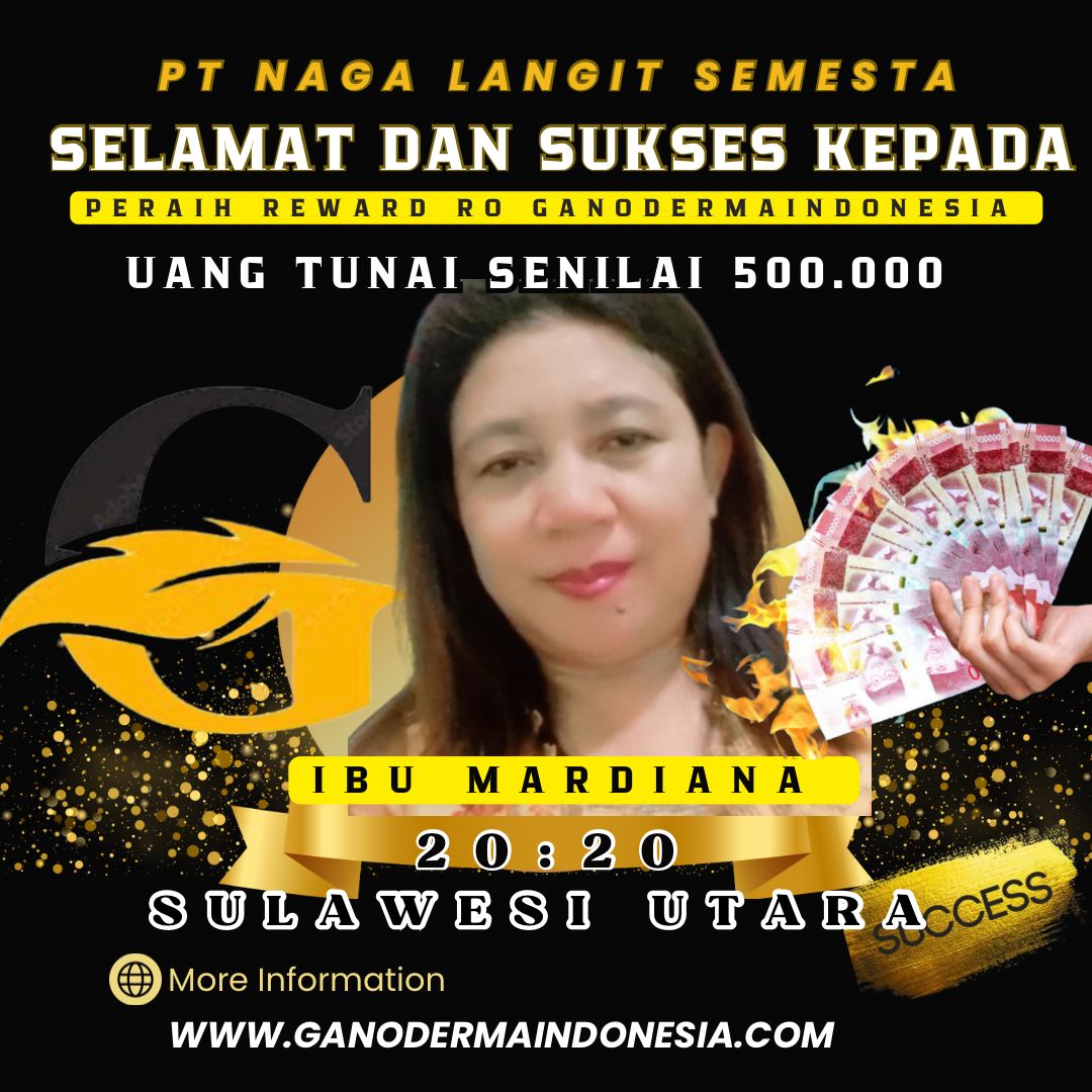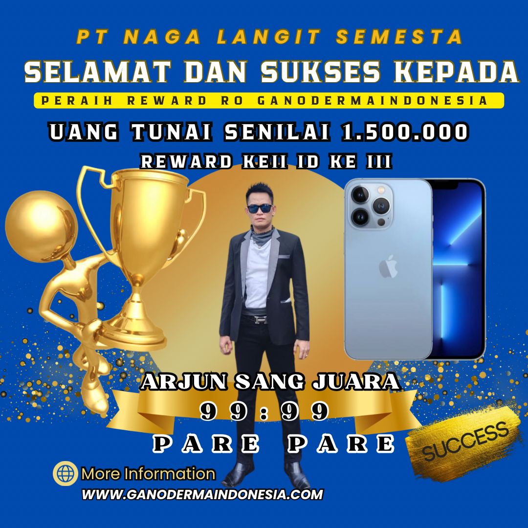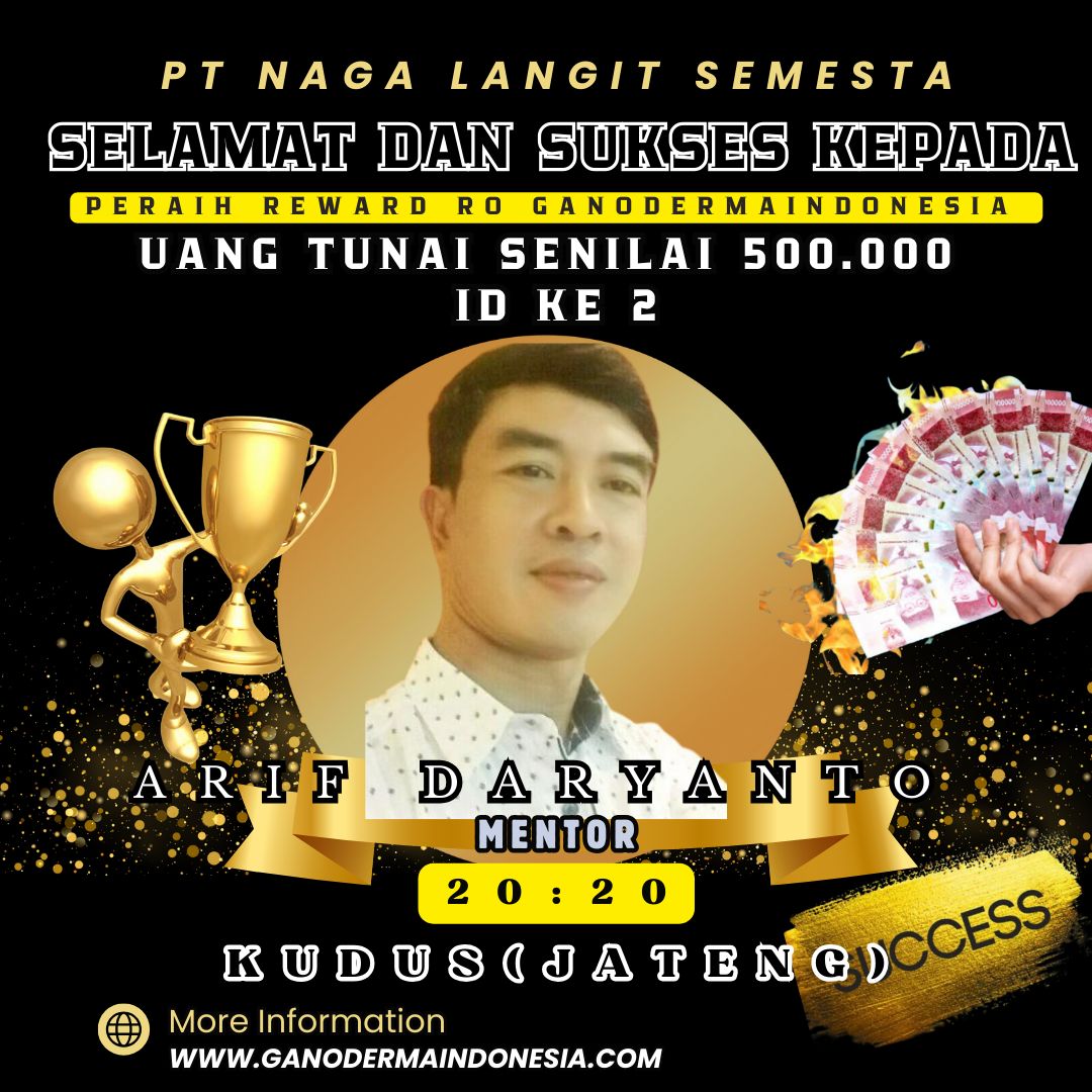 Kami dengan bangga mengucapkan selamat atas pencapaian luar biasa yang telah diraih oleh para mitra bersama Ganodermaindonesia. Kesuksesan ini adalah bukti nyata dari kerja keras, dedikasi, dan komitmen Anda untuk terus berkembang dan memberikan yang terbaik. Semoga pencapaian ini menjadi awal dari lebih banyak keberhasilan yang akan datang, serta menjadi inspirasi bagi banyak orang di sekitar Anda. Teruslah melangkah maju dan menebar manfaat yang lebih luas dengan Ganodermaindonesia!
